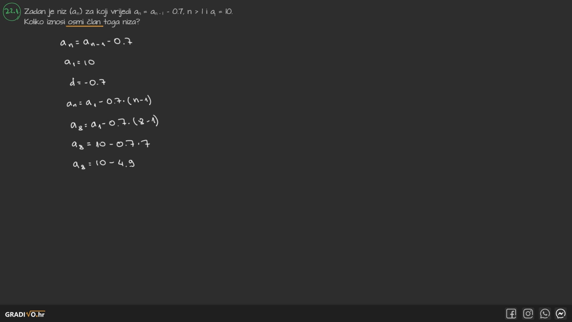 Dakle, prvi član niza je onaj broj koji je pridružen jedinici. Označavamo $a_1$ umjesto $a(1)$.