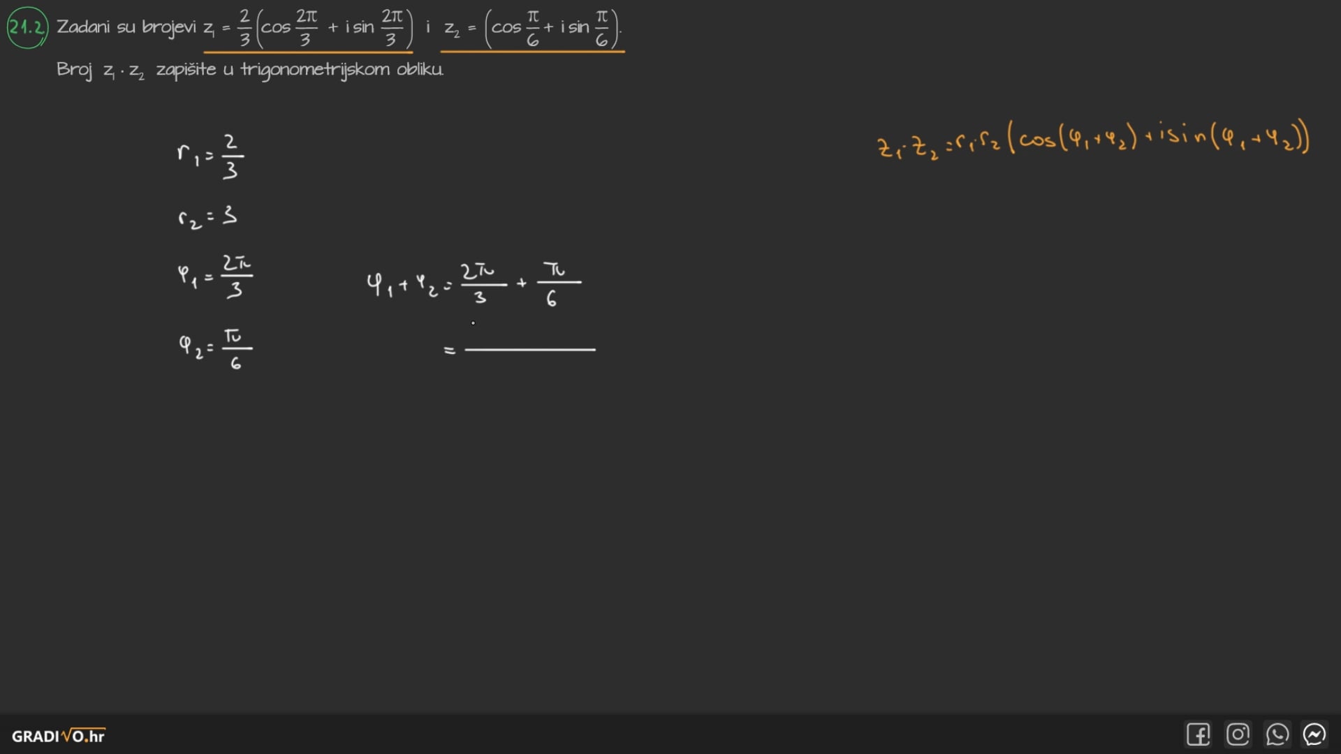 Označimo kompleksne brojeve s kojima ćemo raditi s $z_{1}=r_{1}\left(\cos \varphi_{1}+i \sin \varphi_{1}\right)$ i $z_{2}=r_{2}\left(\cos \varphi_{2}+i \sin \varphi_{2}\right)$.
